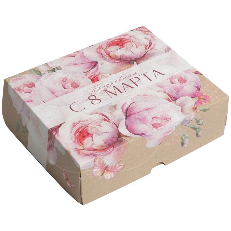 Доставка Коробка для сладостей "С 8 марта" крафт 17x20x6 см из магазина в вашем городе: