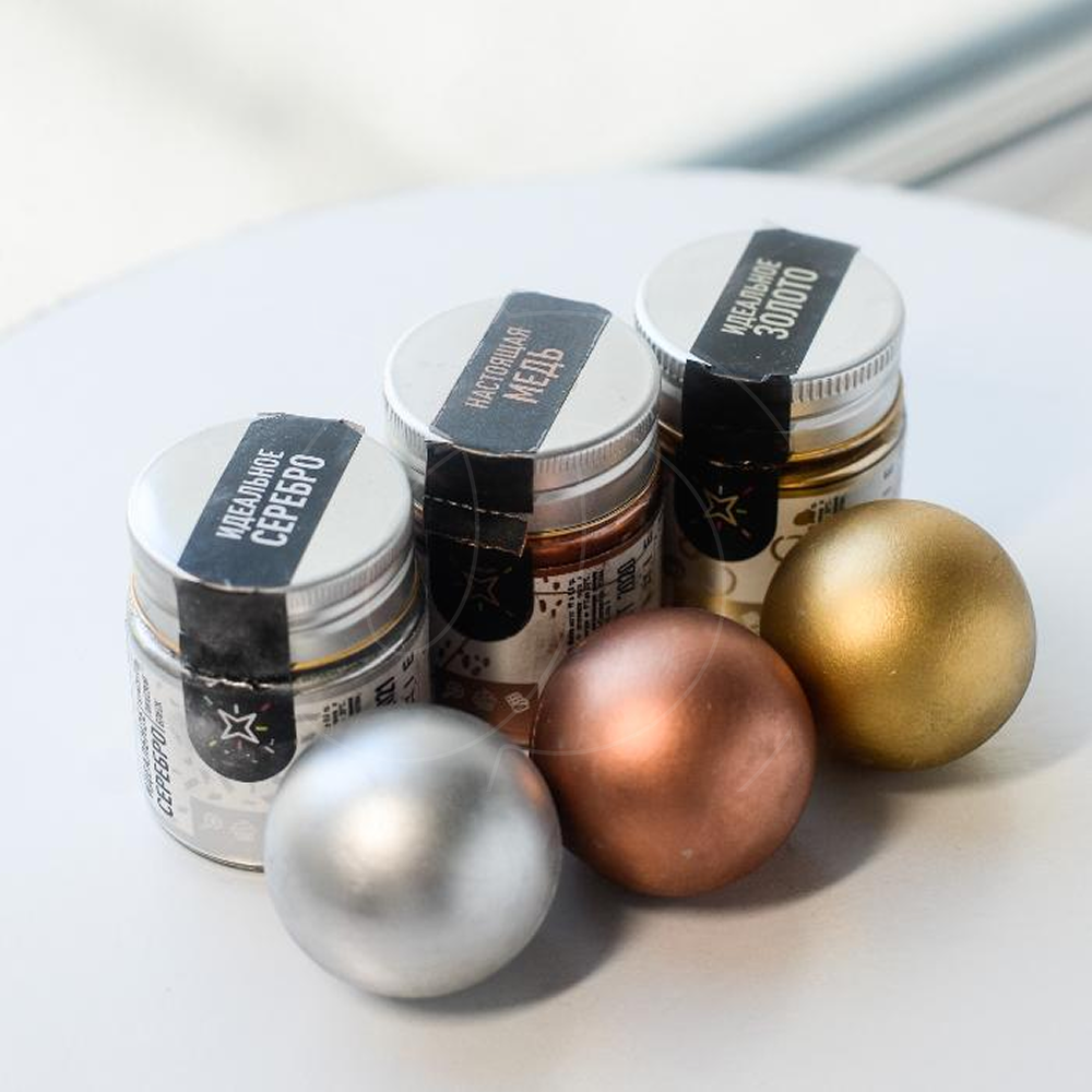 Пищевой блеск Mixie “Настоящая медь” придаст вашим десертам яркое сияние золотого оттенка.