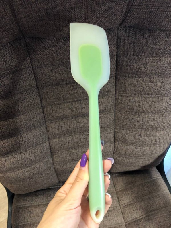 Лучшая лопатка, которая у меня была)) Литая, а это значит, риск, что она у вас сломается стремится к нулю)) Сделана из плотного силикона, но при этом она гибкая и ей удобно работать с плотными массами и собирать остатки продукта со стенок миски.