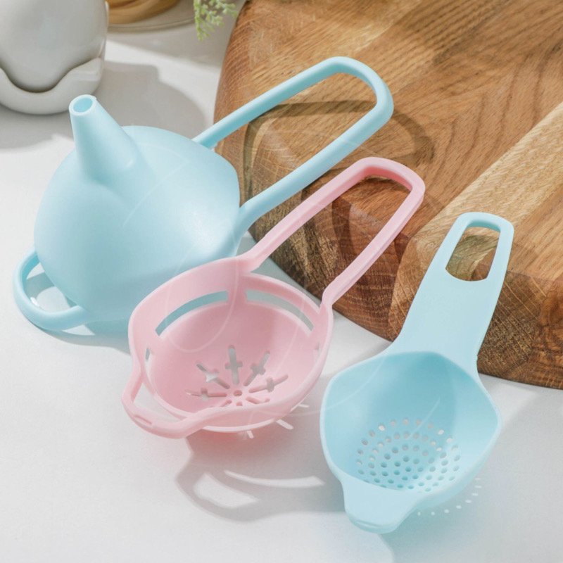 С помощью сепаратора можно отделить белок от желтка; ситечка - просеять сухие продукты; воронки - перелить жидкость.