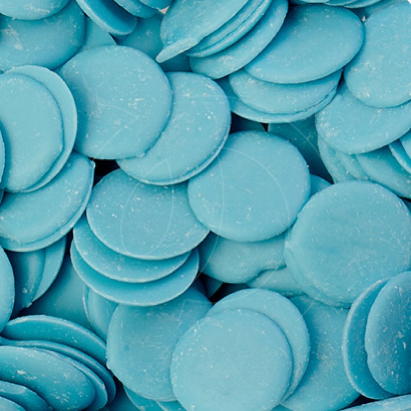 Готовьте различные десерты используя шоколадную глазурь в виде капель (каллет) нежно-голубого цвета.