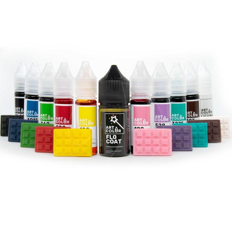 Flo-Coat (Art Color) используется как жировая добавка к водорастворимым гелевым красителям Art Color для дальнейшего окрашивания шоколада и шоколадной глазури на основе лаурина или продуктов на основе растительных жиров.