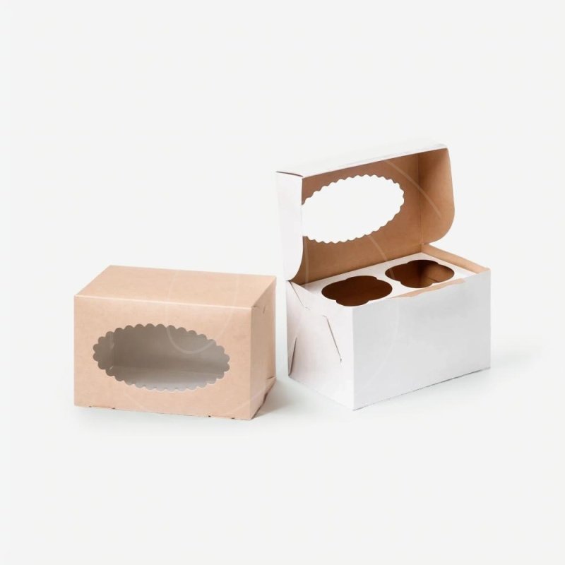 Доставка Коробка на 2 капкейка с окном крафт/белая из магазина в вашем городе: