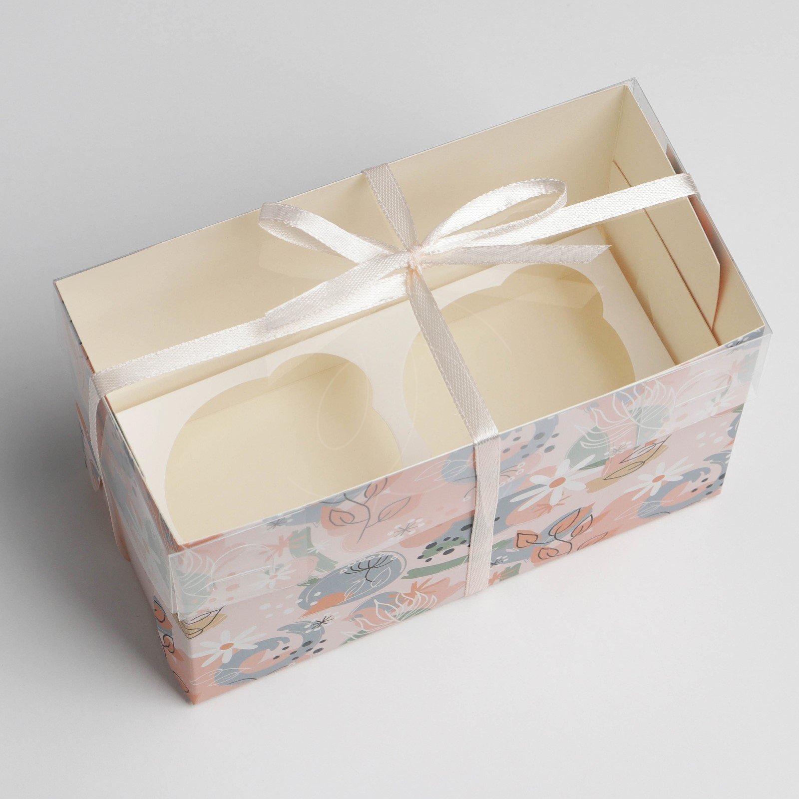 Коробка на 2 капкейка с окном "Цветение" 16х8х10 см
