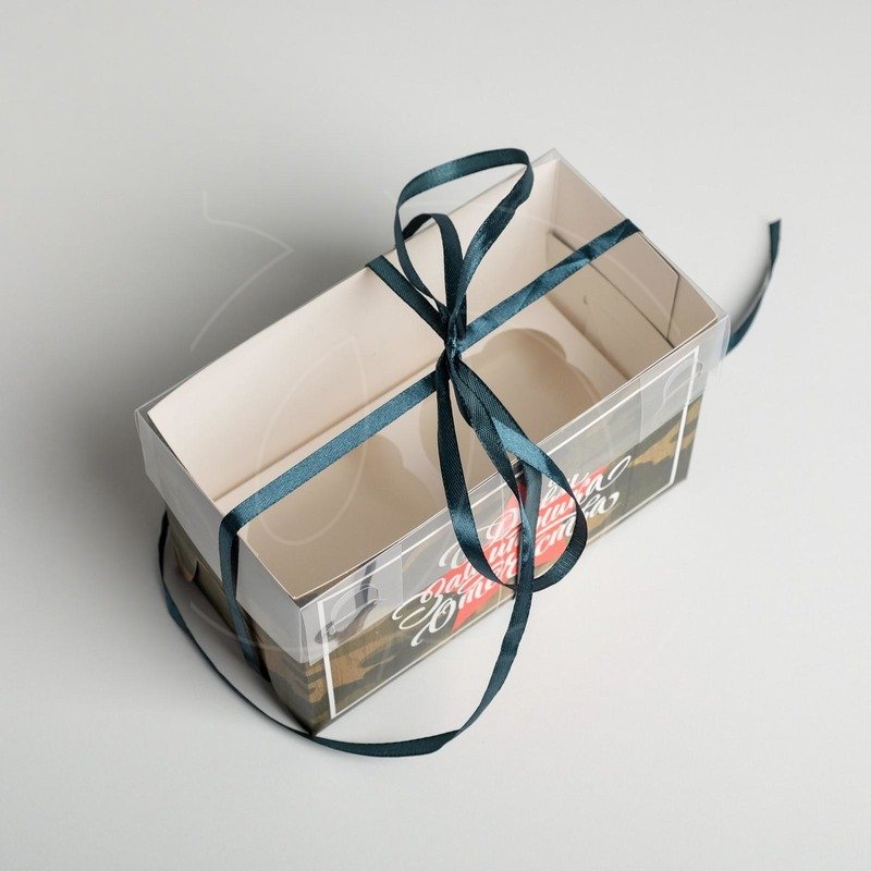 Коробка на 2 капкейка с окном "23 февраля" 16х8х10 см