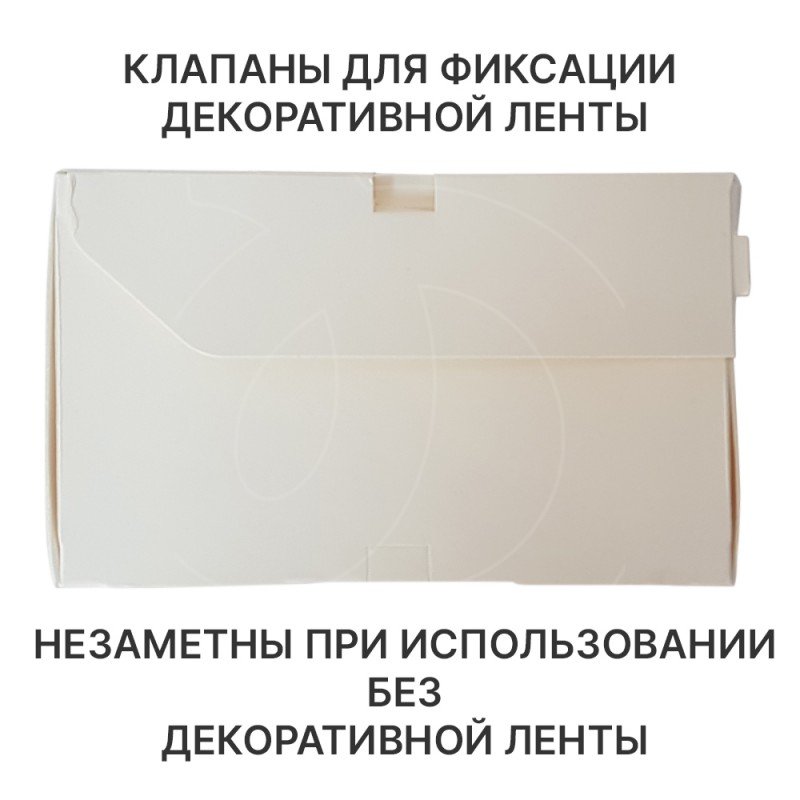 Коробка оснащена клапанами для фиксации декоративной ленты; без ленты клапаны останутся незаметны.