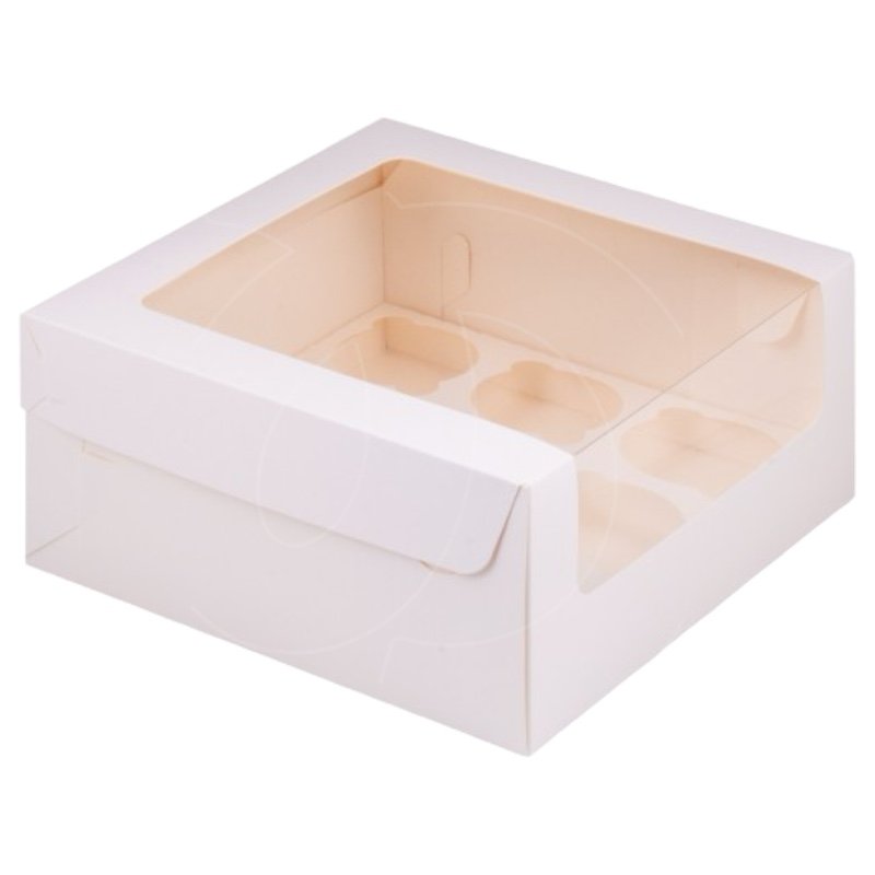 Доставка Коробка на 9 капкейков с окном белая 23,5х23,5х11 см из магазина в вашем городе: