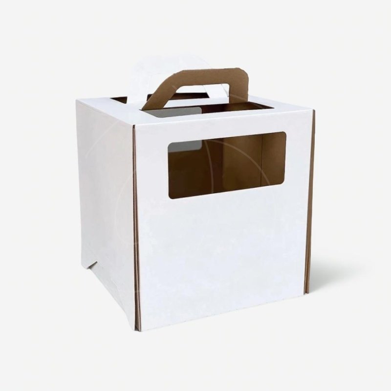 Доставка Коробка для торта с окном и ручкой белая 24х24х26 см из магазина в вашем городе: