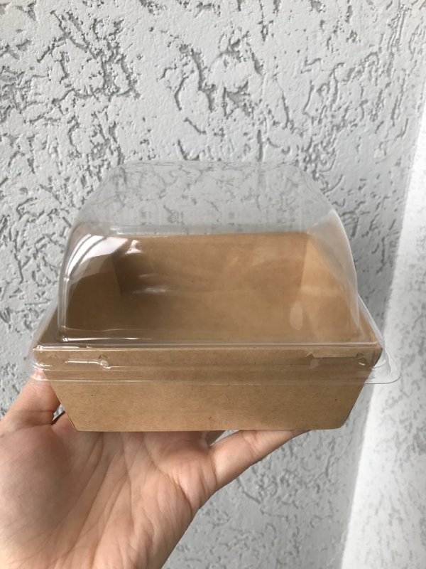 Упаковка выполнена из пищевого картона с жёсткими двойными бортами, дном и пластиковой крышкой.