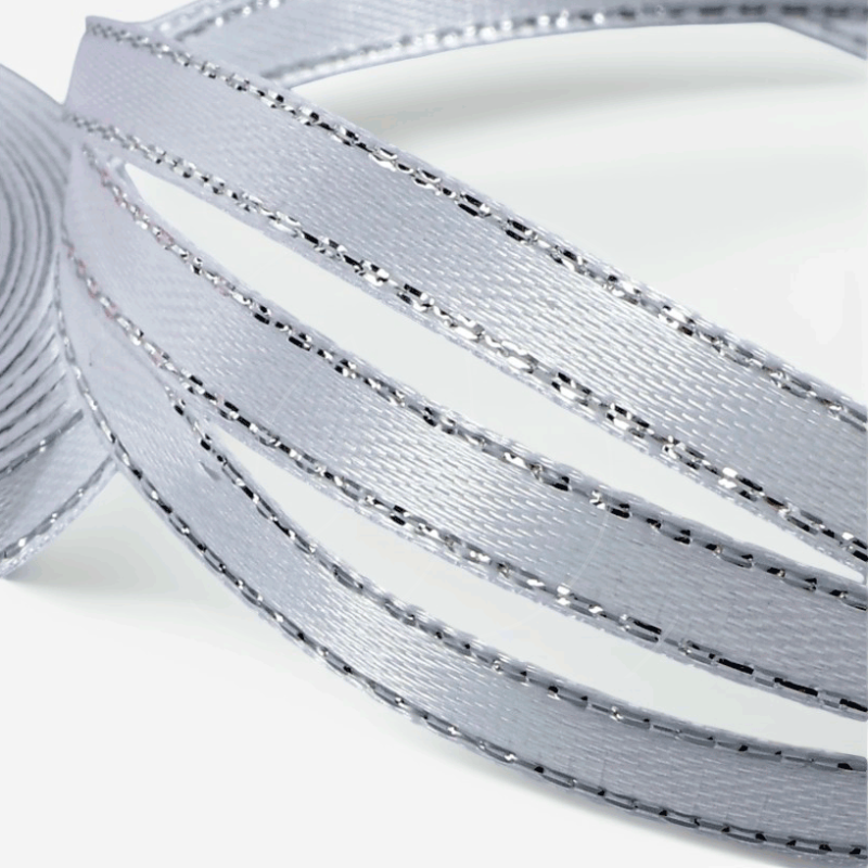 Доставка Лента для декора и упаковки Атласная Белая с серебром 6 мм из магазина в вашем городе: