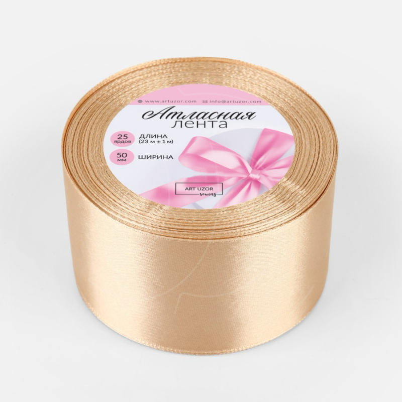 Доставка Лента для декора и упаковки Атласная Бежевая 5 см из магазина в вашем городе: