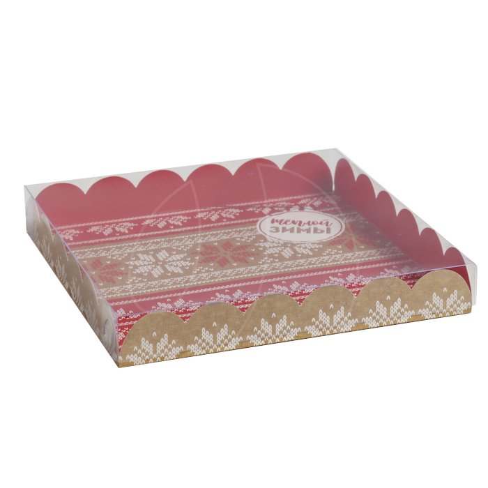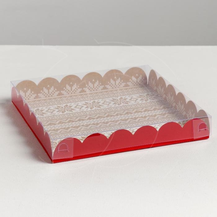Коробка для сладостей с прозрачной крышкой "Зимний свитер" 21х21х3 см