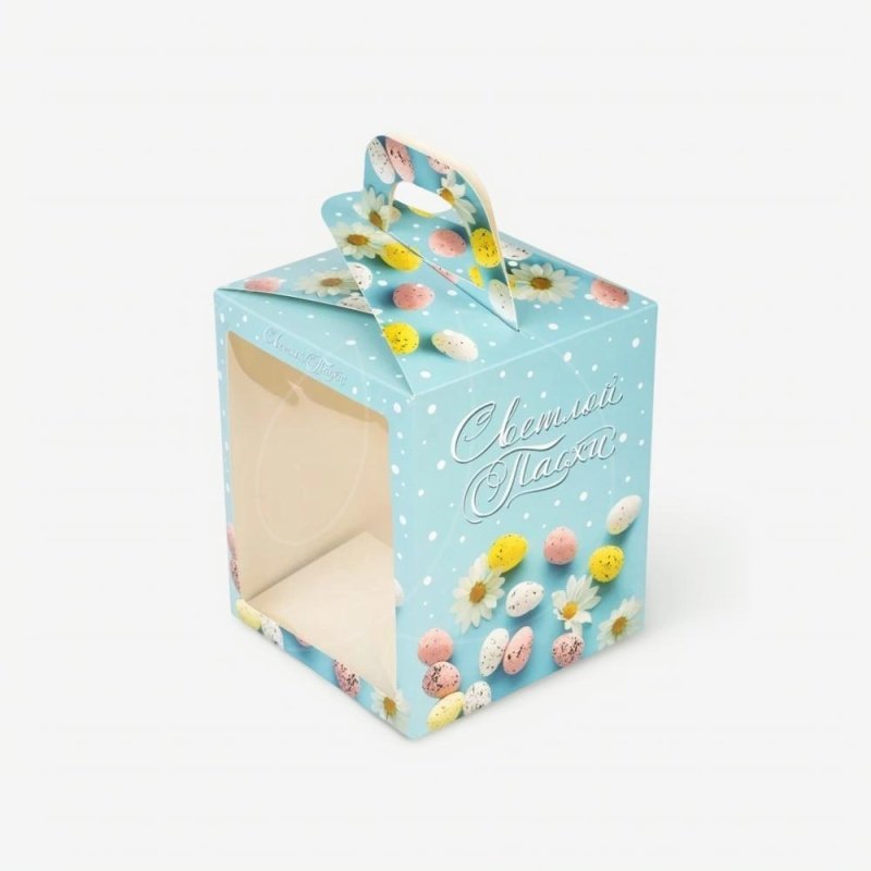 Доставка Коробка для кулича с окном небесно-голубая 15х15х18 см из магазина в вашем городе: