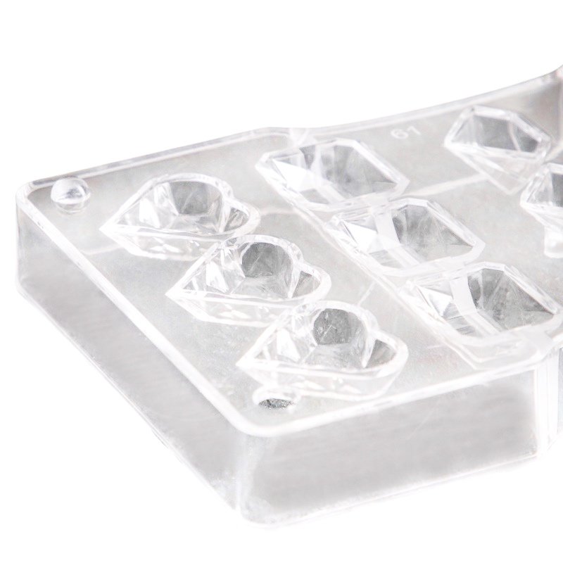 Форма выполнена в виде объемных фигурок, напоминающие алмазы - сердце, прямоугольник, кристалл, круг, овал.