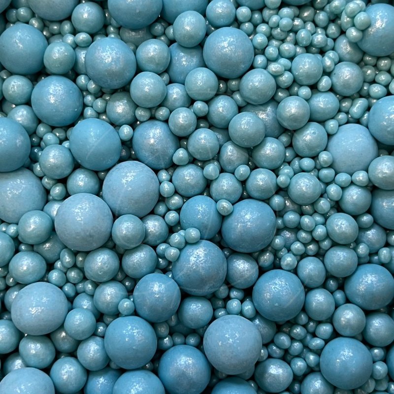 Жемчужная посыпка покрыта ярким пищевым блеском бирюзового цвета.