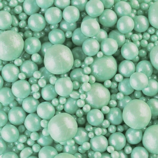 Жемчужная посыпка покрыта ярким пищевым блеском изумрудного оттенка.