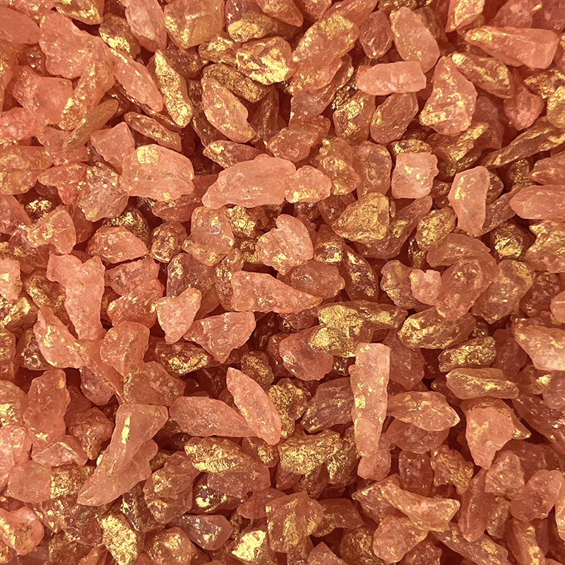 Персиковые сияющие сахарные кристаллики с блеском серебра.