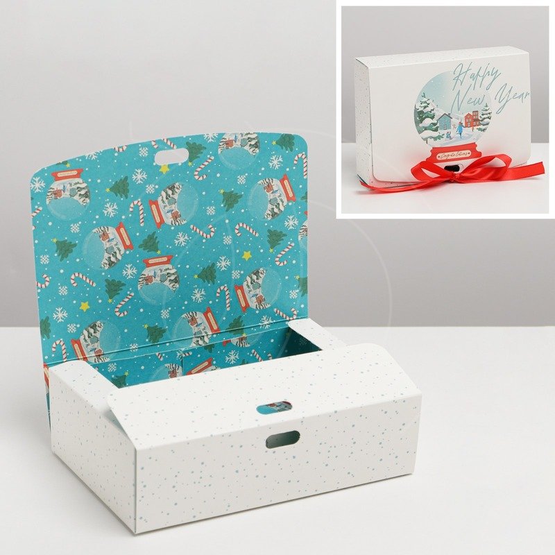 Доставка Коробка для сладостей двухсторонняя "Снежный шар" 16,5х12,5х5 см из магазина в вашем городе: