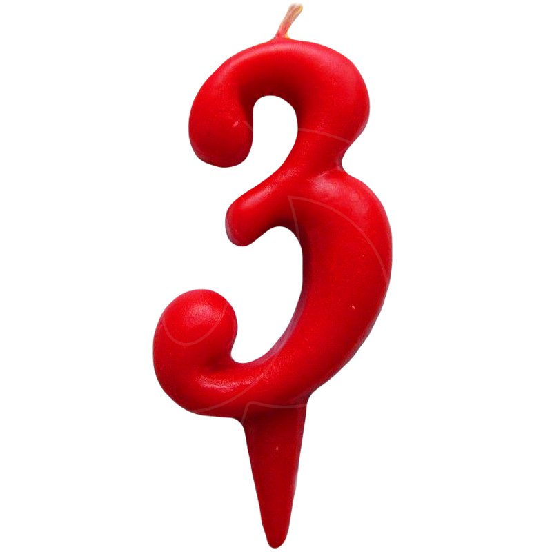 Доставка Свеча декоративная округлая "Цифра 3" Красная из магазина в вашем городе: