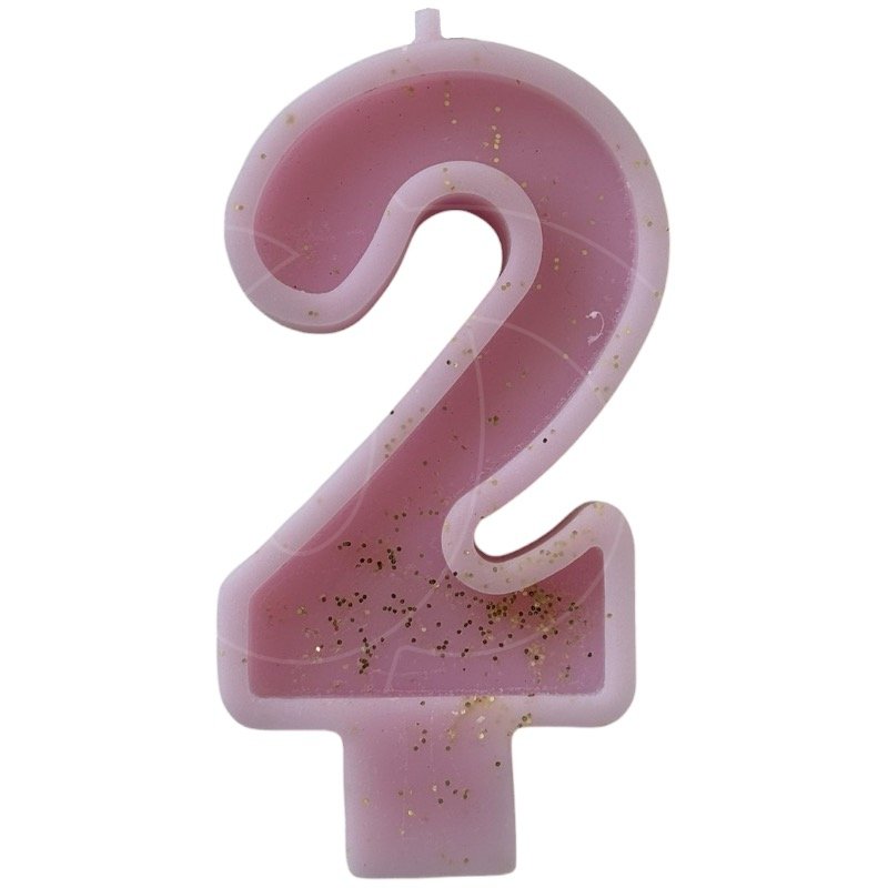 Свеча декоративная Цифра "2" Розовая с блёстками