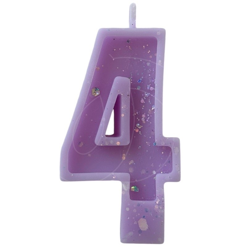 Свеча декоративная Цифра "4" Сиреневая с блёстками