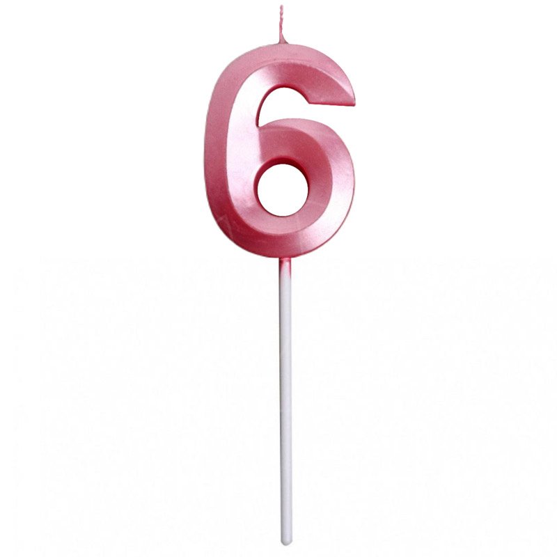 Доставка Свеча декоративная Цифра "6" Розовая перламутровая из магазина в вашем городе: