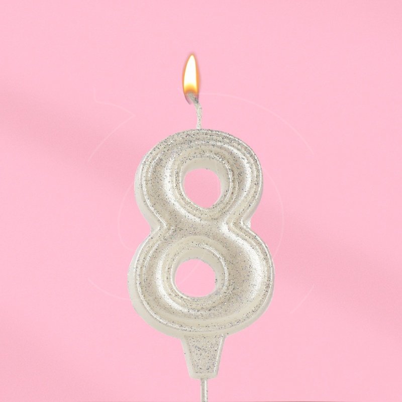 Свеча декоративная Цифра "8" Жемчужный перламутр с блёстками