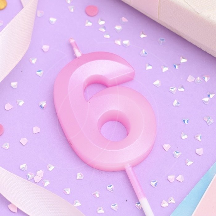 Доставка Свеча декоративная Цифра "6" Грань Розовый из магазина в вашем городе: