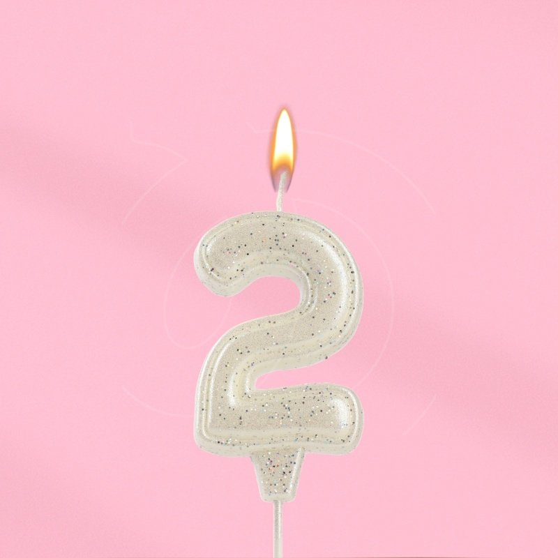 Свеча декоративная Цифра "2" Жемчужный перламутр с блёстками