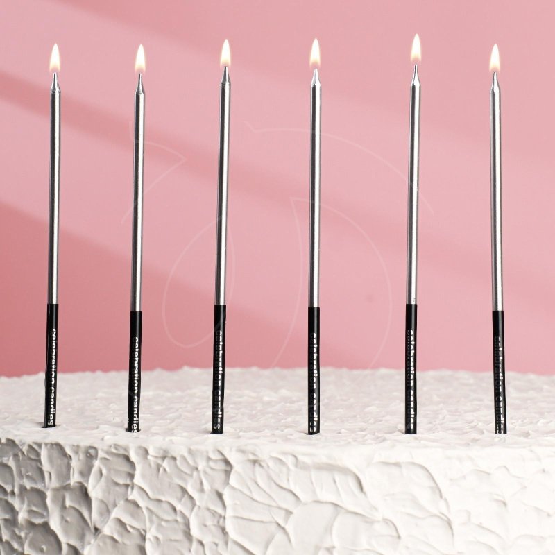 Доставка Свечи декоративные Серебро с чёрным 14,5 см 6 шт из магазина в вашем городе: