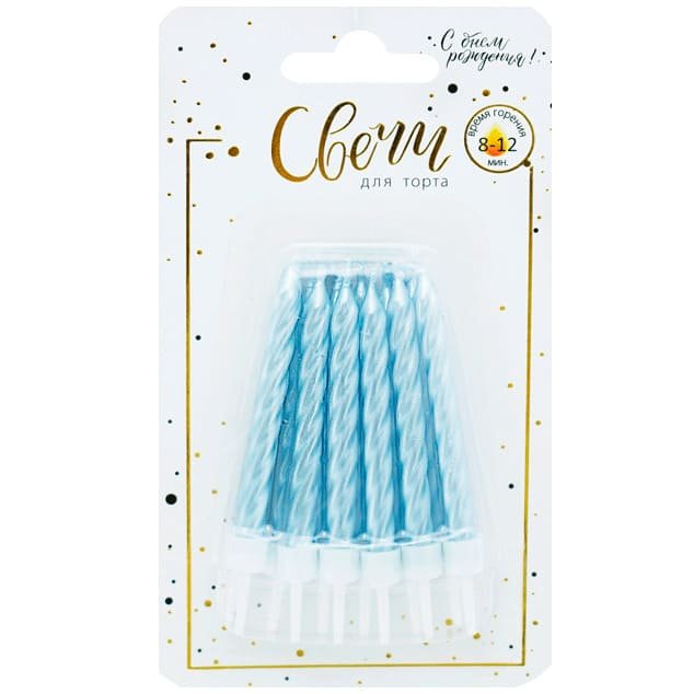 Доставка Свечи декоративные "Голубые завитки" Перламутровые 6 см 12 шт из магазина в вашем городе: