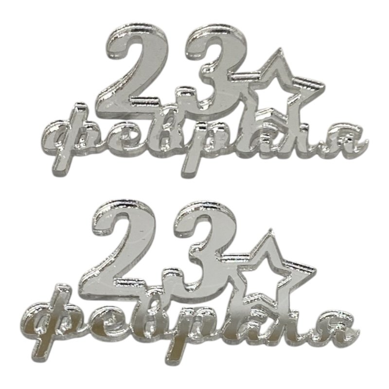 Набор топперов декоративных акриловых "23 февраля" Серебро 6х3 см 2 шт