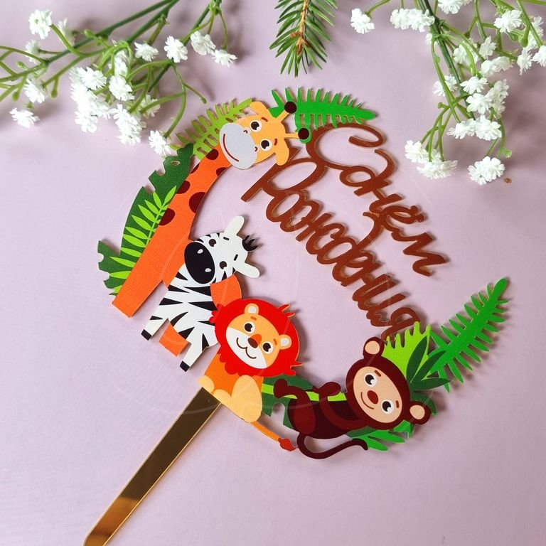 Доставка Топпер декоративный акриловый "С Днём Рождения" Джунгли из магазина в вашем городе: