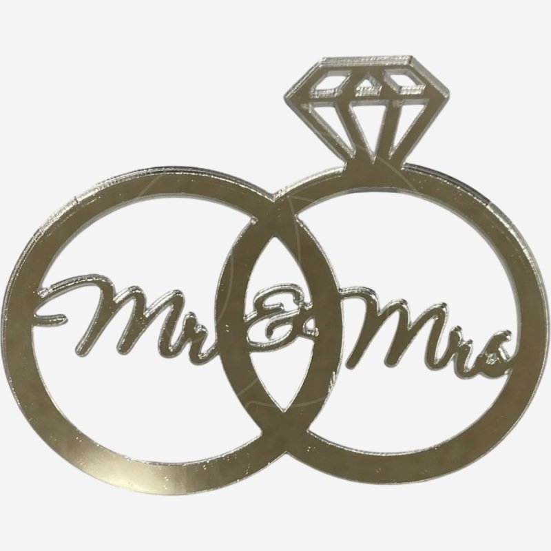Топпер декоративный акриловый "Свадебные кольца" Серебро 10х8,5 см