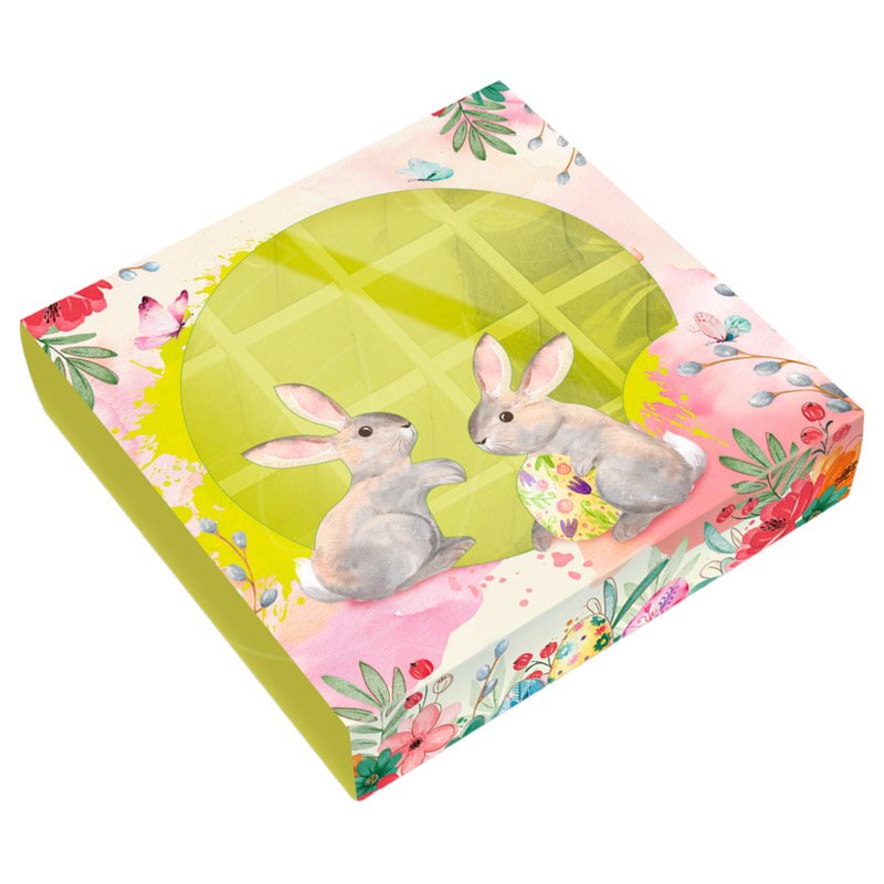 Доставка Коробка на 16 конфет с окном "Зайчата" 17,7х17,7х3,8 см из магазина в вашем городе: