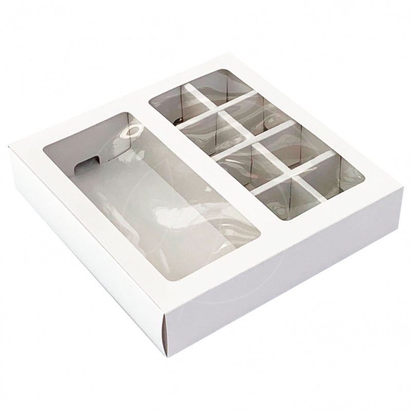 Коробка на 8 конфет и шоколадную плитку с окном 17,5х17,5х4 см
