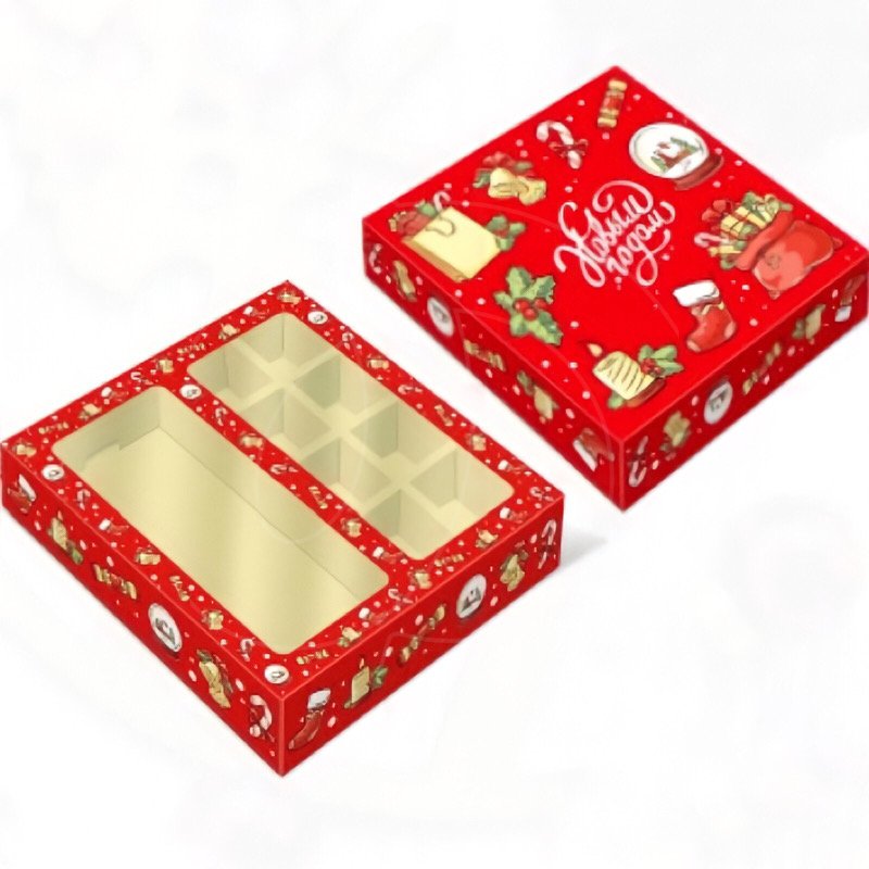 Коробка на 8 конфет и шоколадную плитку с окном "Сладкий подарок"