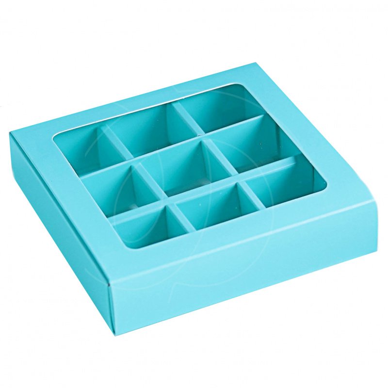 Доставка Коробка на 9 конфет раздвижная голубая 13,7х13,7х3,7 см из магазина в вашем городе: