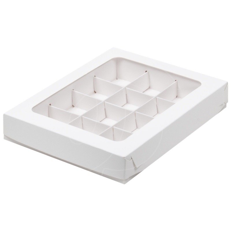 Коробка на 12 конфет с окном белая 19х15х3 см